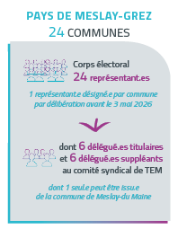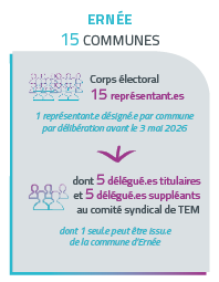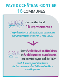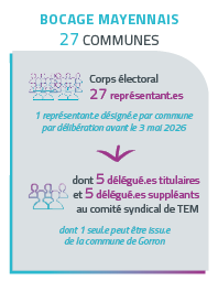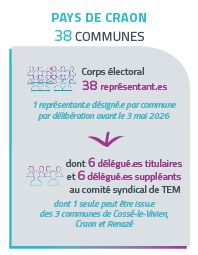 Ainsi, après chaque renouvellement des conseils municipaux, de nouveaux représentant.es TEM sont désigné.es par les conseils municipaux et communautaires. Ensuite, chaque corps électoral élit les délégué.es du comité syndical de TEM. Ces délégué.es, qui composent le nouveau Comité syndical, sont ensuite réuni.es pour désigner la nouvelle gouvernance (Présidence et vice-présidence, délégation, etc,…) de Territoire d’énergie Mayenne.